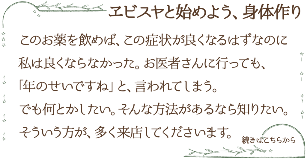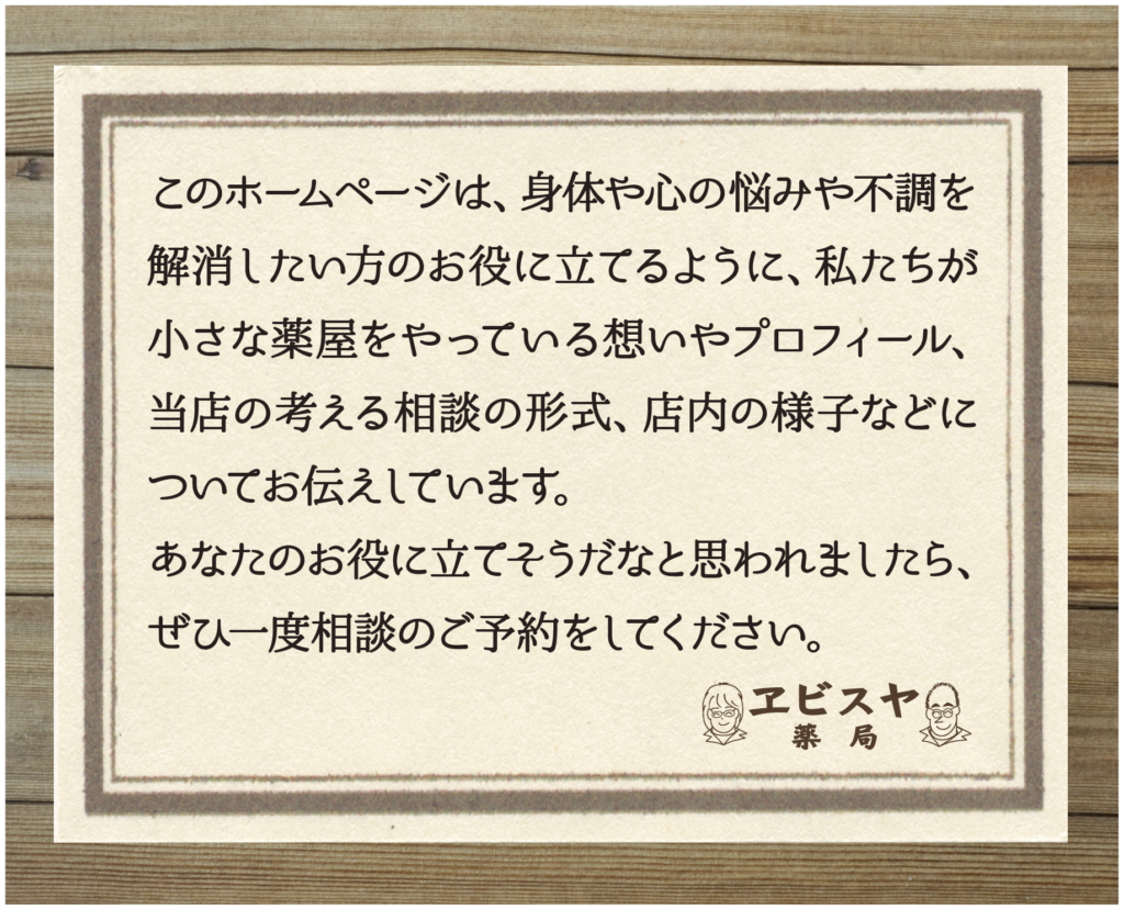 人の健康と笑顔を第一に願っているヱビスヤにとって、